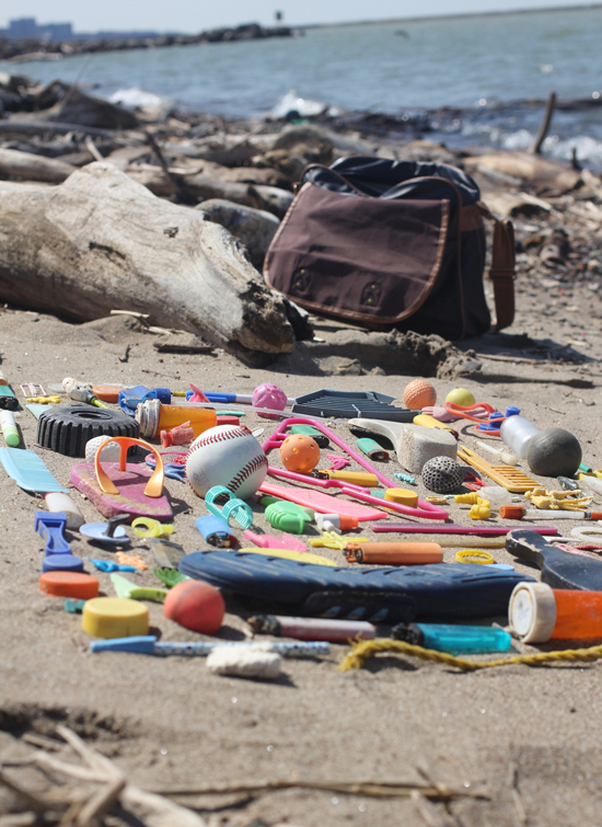 I finally found a beach I can do one of my favorite hobbies at! Mickey and I had visited a beach right before everything thawed hoping to find some glass. I was super stoked because, although we found barely any glass, there was tons of trash. I couldn’t wait to go back and collect it for one of my found on the beach trash photos. I went back right after it thawed to find they had completely cleaned up. I was starting to think maybe, just maybe, they take better care of the beaches in Cleveland than in Geneva.