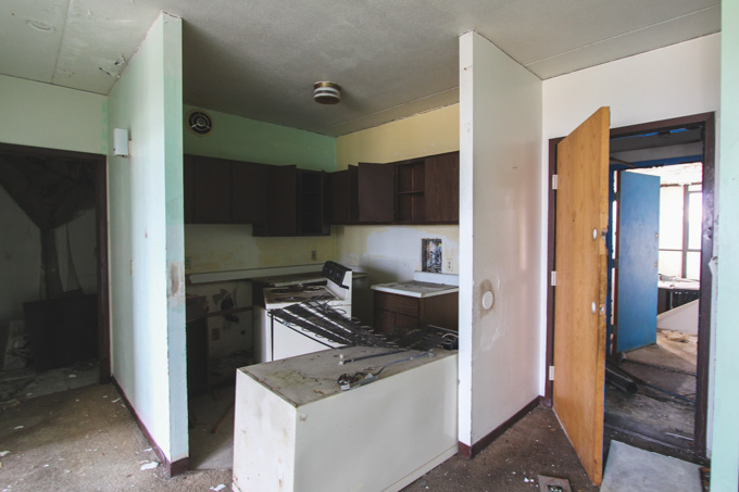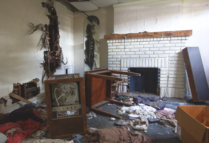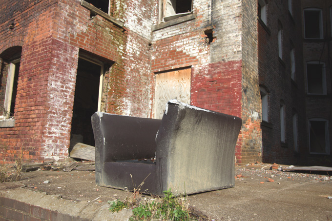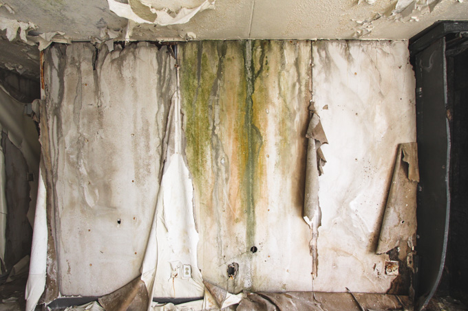 The photo of the chair with the peeling room in the background is so stoic. The room's layout is the same as my living room!