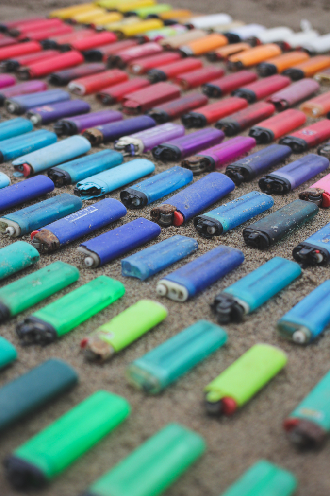 It’s crazy to me how much litter washes up the beach. While the amount of lighters and trash I pick up is shocking it’s nothing compared to everything else that makes it way onto the sand. I was particularly taken aback on the day I went to lay out my lighters for the above photos. SO. MUCH. PLASTIC. It’s so colorful, it was weren’t absolutely disgusting it might kind of be pretty.