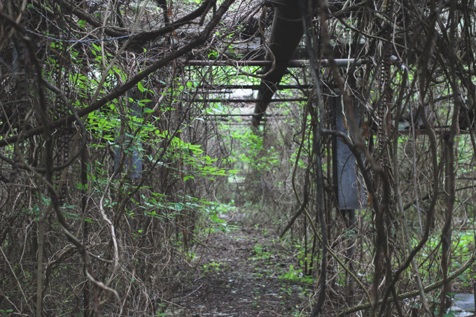 As we approached the greenhouse the three of us each let out an audible noise of excitement about how insanely green the place was. We even questioned how plausible it actually was to photograph since it looked so overgrown. Would we even be able to move around with all the vines, trees and greenery? Funnily enough once inside I was a bit underwhelmed with the growth. It wasn’t until I got home and looked at the photos from the last visit that I realized how much more green the place was. Inside, surrounded by all these plants, it’s less like a greenhouse and more like a jungle. Save for the broken glass and pieces of metal peeking through in certain places it’s easy to forget what this used to be.