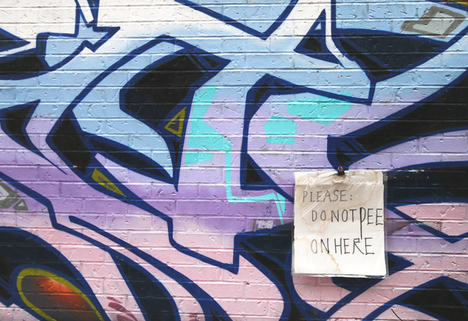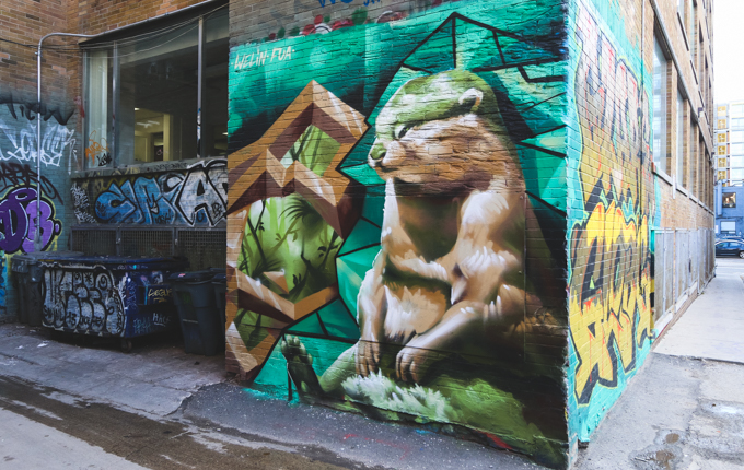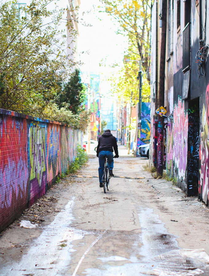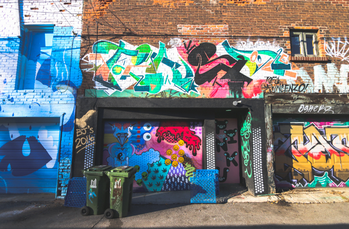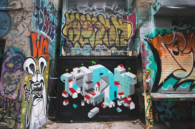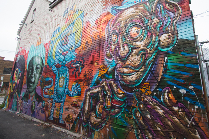 As I mentioned yesterday, over the weekend Jeff and I made the five hour drive up to Toronto. I was completely enamored almost instantly. Without a doubt, one of my favorite things about Toronto was how colorful it was. Tucked away in alleys along Queen Street West is this insanely colorful world of graffiti. It doesn’t matter what your opinions are on graffiti, I guarantee you’ll find something that just blows you away. The sheer skill needed to create some of these pieces left me speechless. I’ve literally never seen anything close to this in person before.
