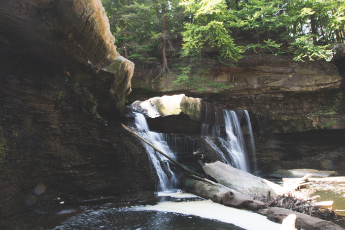 A week or so ago Jeff and I ended up stumbling across a waterfall while on a day trip to Columbus. It was a nice little hike and splashing around in the water was super refreshing! When we got back in the car it hit me, we should spend our summer checking out all the local waterfalls. Ohio probably isn’t the first place that comes to mind when you think of waterfalls but surprisingly, we have A LOT of them.