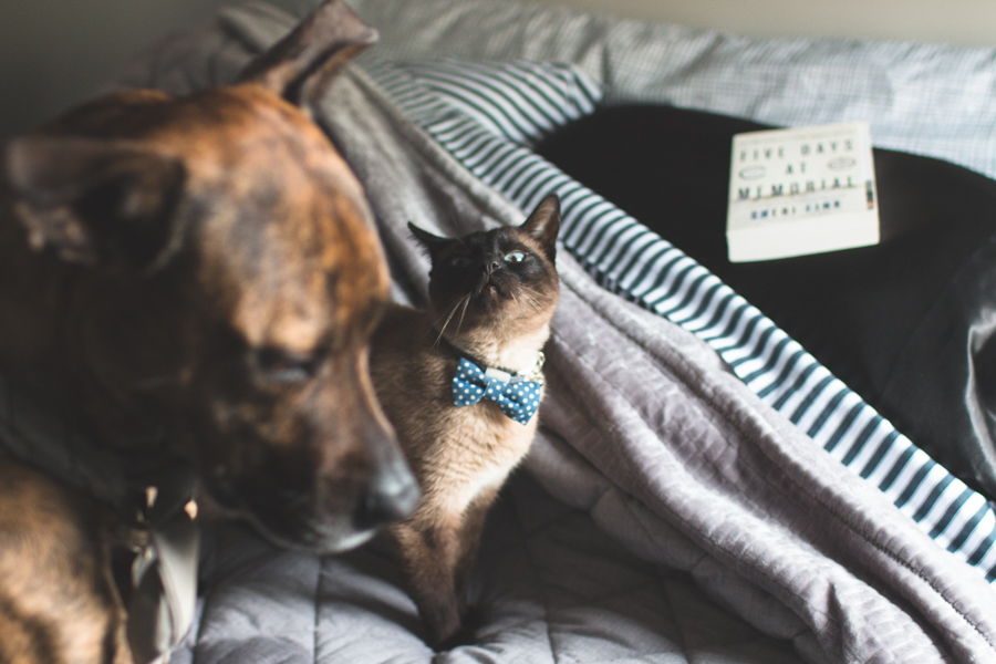 122 : 365 An outtake from the little photoshoot for my ‘how to clean up hair dye messes‘ post. I spent so long trying to get one of the animals to go lay on my pillow but it just wasn’t happening. I like Professor’s stupid face in this shot though. He’s such a silly little thing. Klaus’s posture kind of makes it look like Professor said something really mean to him.