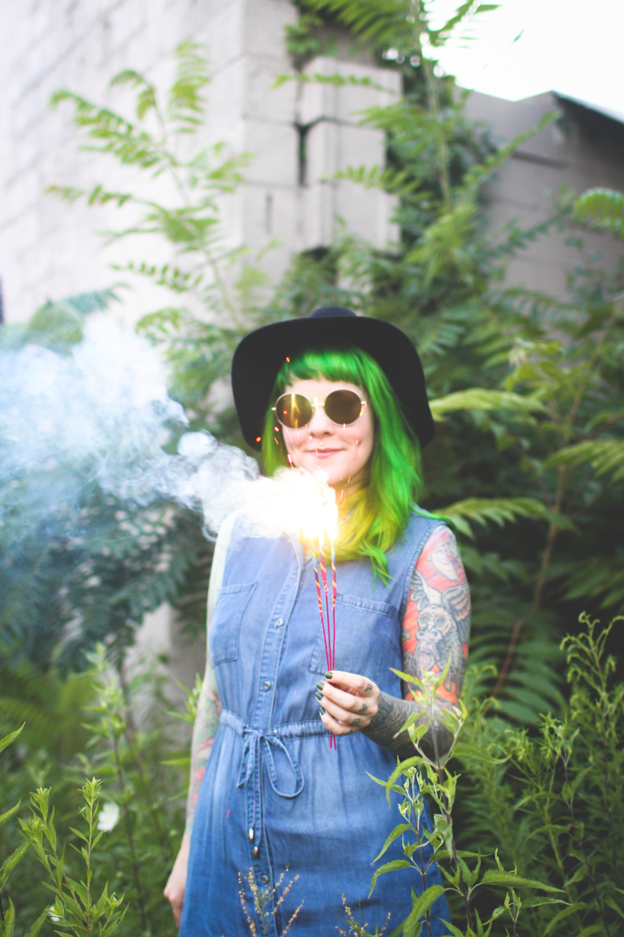 207 : 365 Just a gal who maybe sorta already went mostly green again and some sparklers.