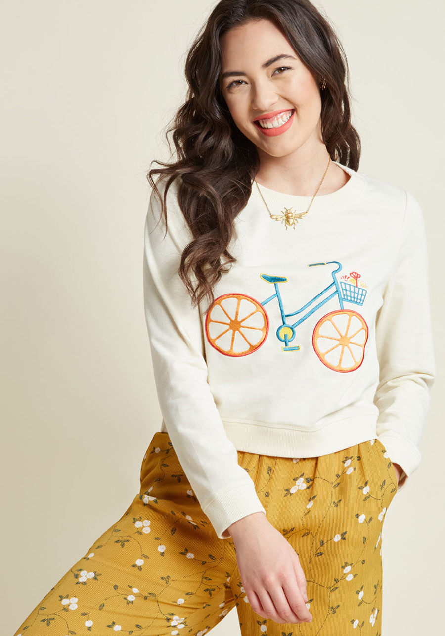 While we’re on the subject of cute clothing with bike prints – check out this pullover!