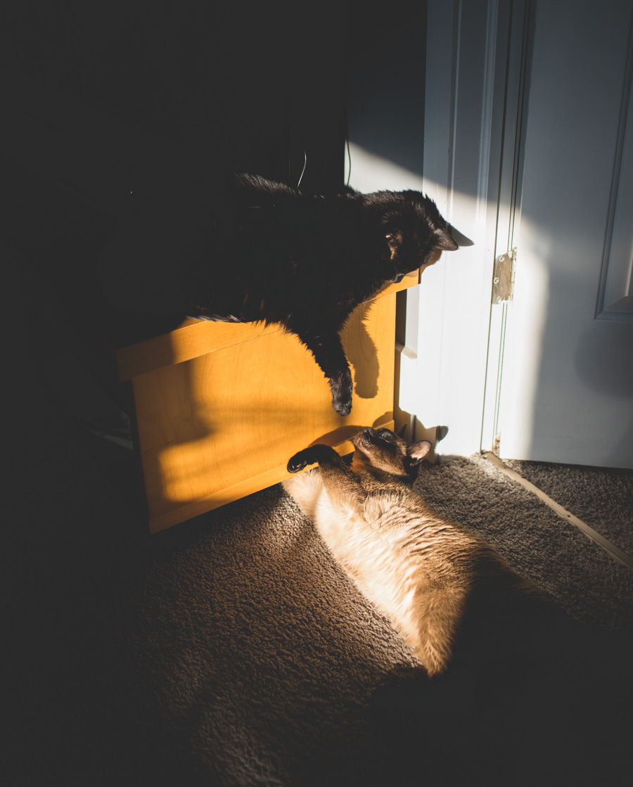 A little recap here; When I moved to my first apartment alone back in 2014, the cats hid in the litter box for nearly a week. They were absolutely terrified and were honestly quite skittish the entire time I lived there. In my next apartment they hid for a few days after moving but quickly warmed up, and made the place their own. With this move, I expected they’d hide for a few days then everything would go back to normal. I was mistaken. There was no hiding and almost immediately they were out exploring their new surroundings. Its obvious they are SO happy here, and were from basically the second they walked in.