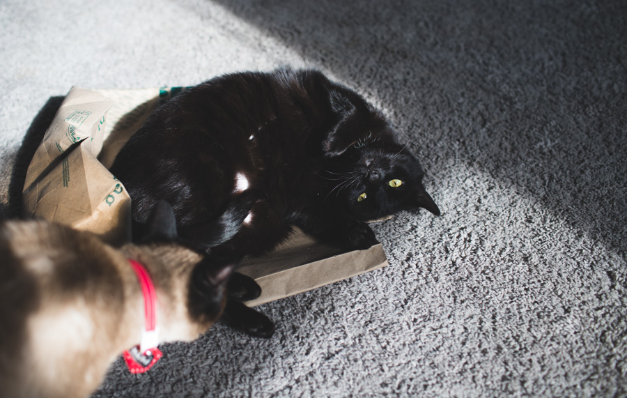 This last year though? She’s a different cat. I’ve even joked that we must have somehow accidentally lost her and picked up a new black cat in the move. I never felt like she was unhappy, just shy. She has definitely come out of her cocoon this last year!