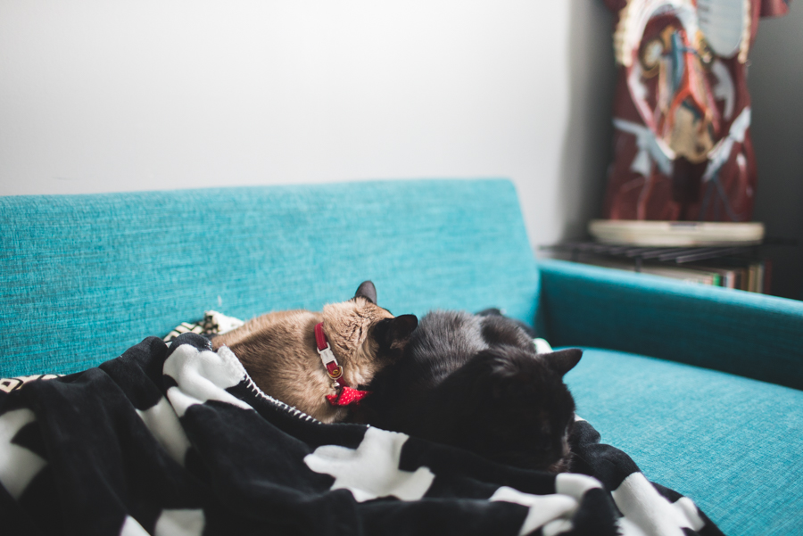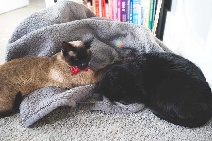 It seems like every other week we have a big development. First, she started cuddling with Professor then I woke up one morning and she was laying with Klaus!!! (That obviously made my whole day!) She wants to cuddle all. the. time. and almost always follows Jeff or I from room to room. It’s so sweet to see this kitty who was so shy, and would rarely sit in my lap become this cuddle crazed meow machine. It makes me so happy to see her obviously living her best life.