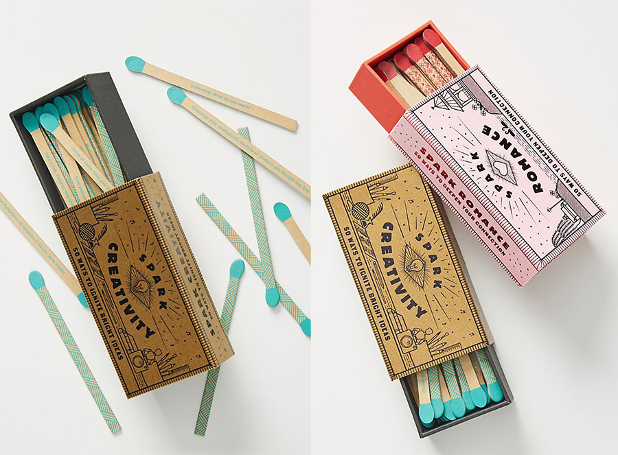 What a fun idea these faux matches are. Each has an idea on it meant to *spark* creativity! (Also available here for a little bit less!) There’s even a version for romance, happiness and adventure!