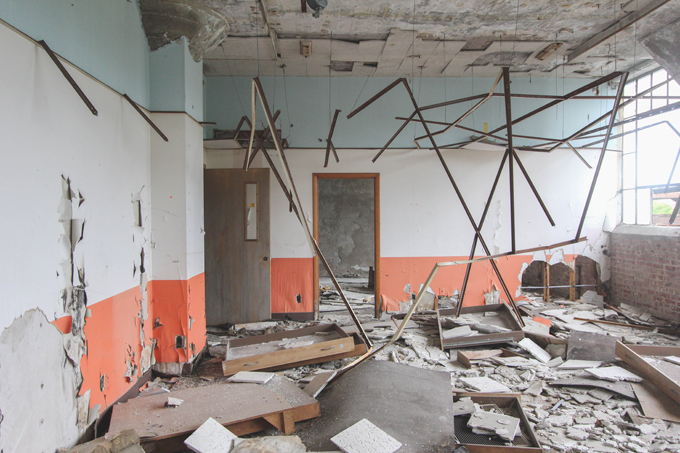 Although it was almost completely cleared out inside with nearly everything gone, it was still a super interesting building. One of my favorite parts was all the “no spitting’ signs painted on the walls. There were a handful of them throughout the building, particularly near stairwells. It’s kind of hilarious to me that it was such an issue they had to do that.