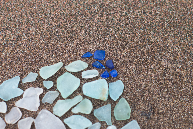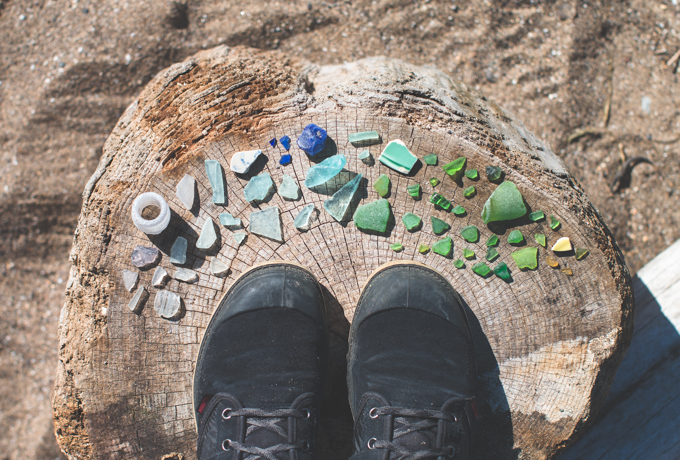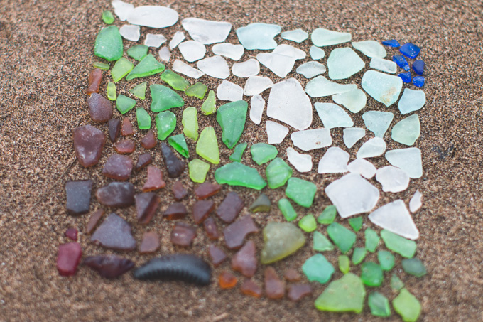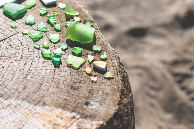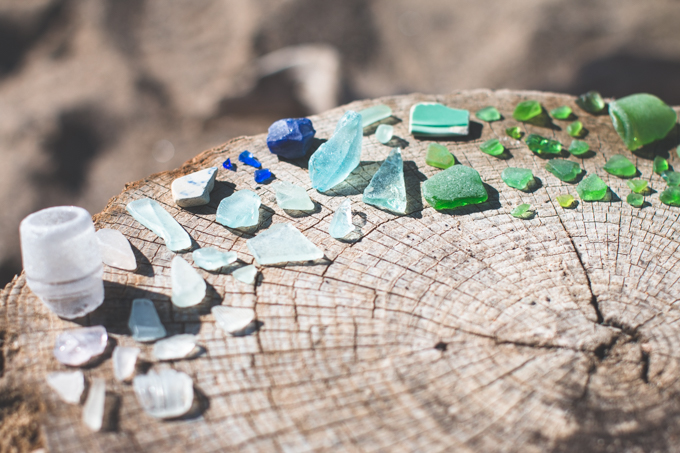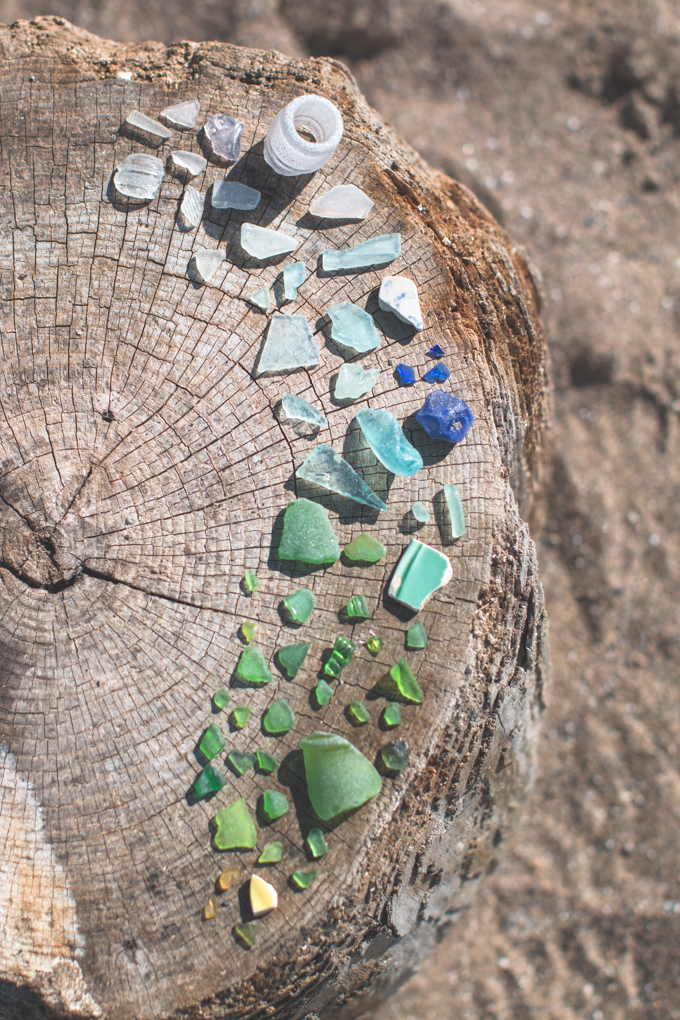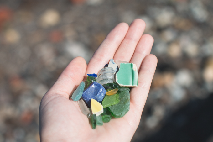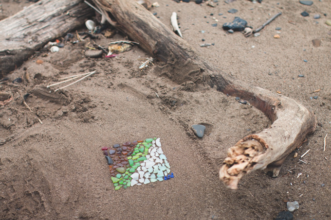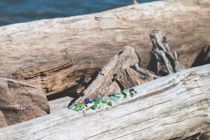 Last week I spent a nice little chunk of my day wandering around the beach, picking up tiny pieces of beach glass, and enjoying the crunch of the leaves underneath my feet. I find searching for glass and arranging it in some sort of order so relaxing. It’s absolutely one of my favorite ways to decompress. I also, of course, love the idea of someone else finding my little arrangement after I’ve left.