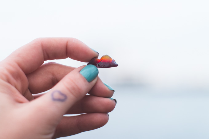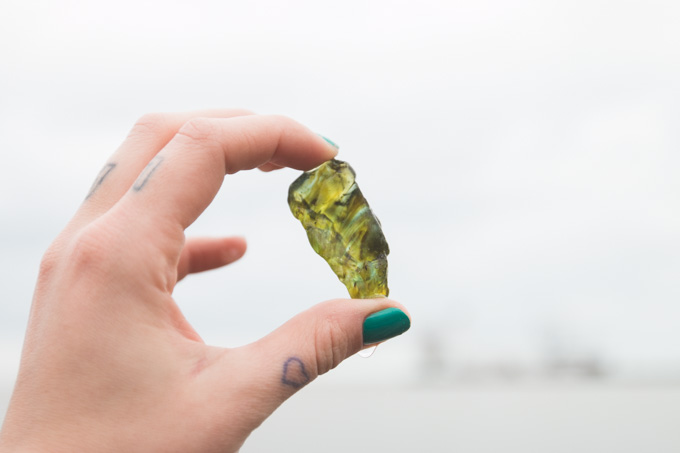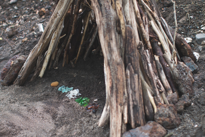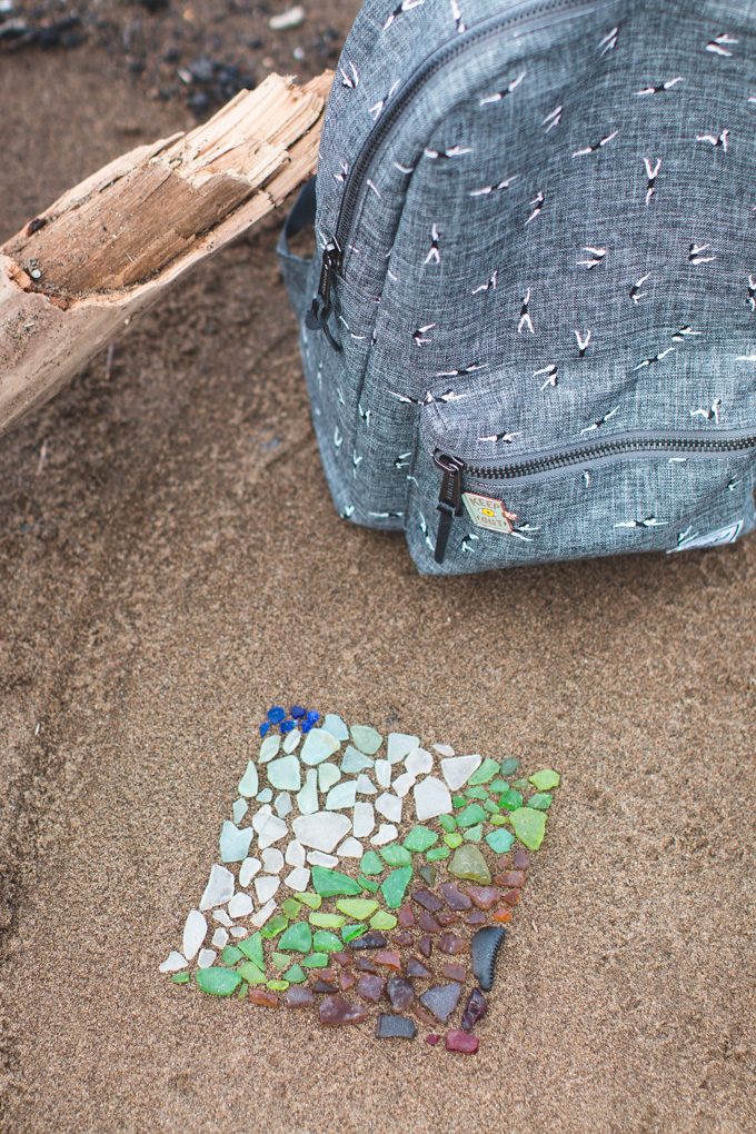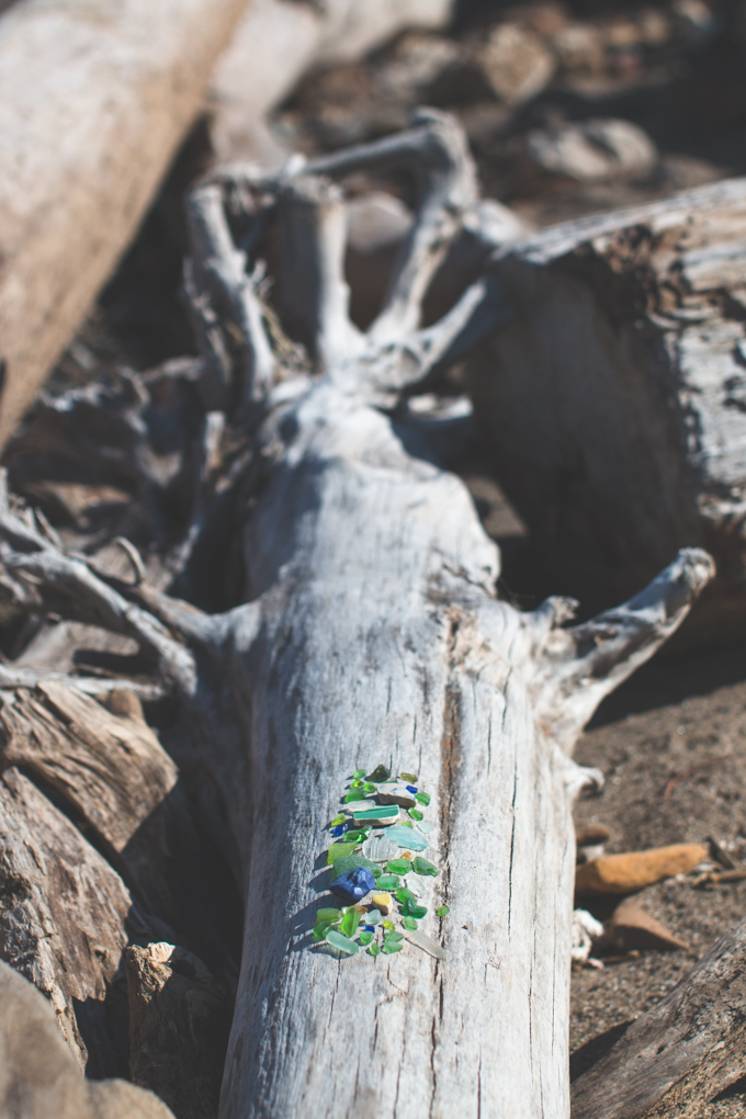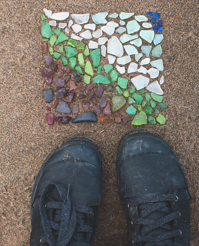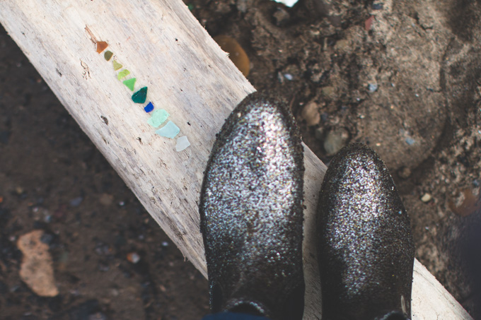 Last week I spent a nice little chunk of my day wandering around the beach, picking up tiny pieces of beach glass, and enjoying the crunch of the leaves underneath my feet. I find searching for glass and arranging it in some sort of order so relaxing. It’s absolutely one of my favorite ways to decompress. I also, of course, love the idea of someone else finding my little arrangement after I’ve left.