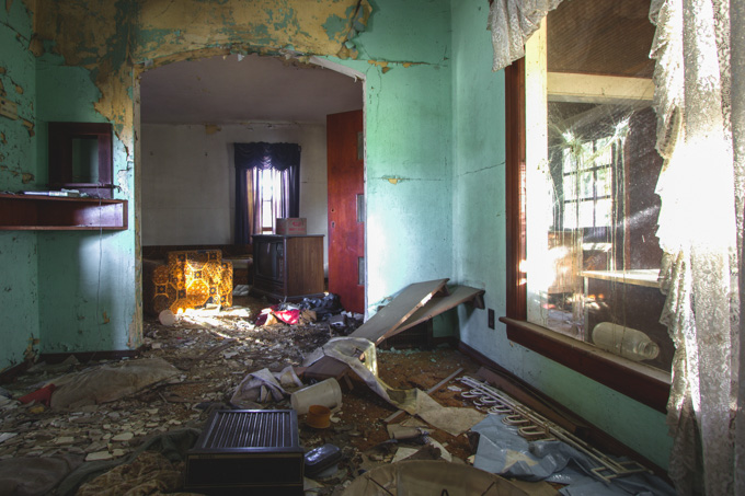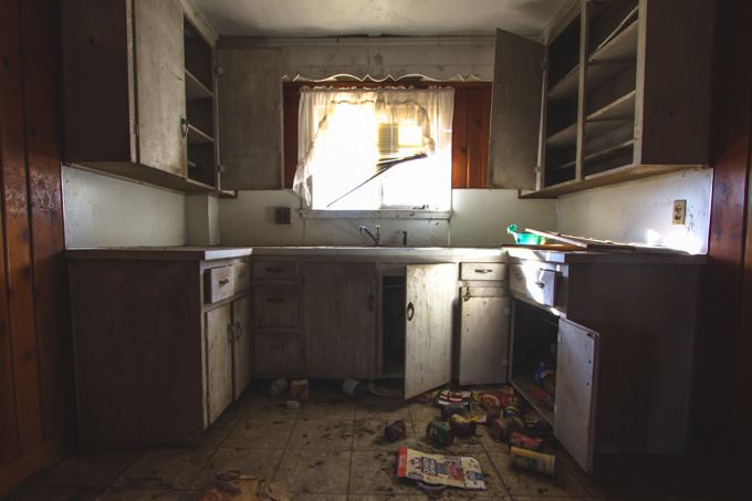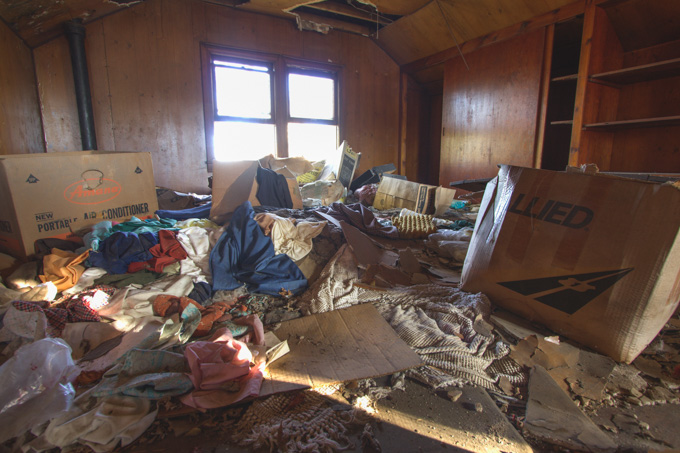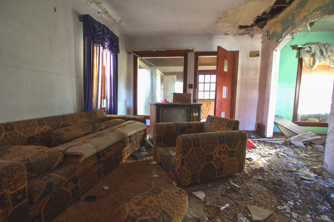 Wow. There really is a lot more emotion attached to this for me, since it was someone's home! Makes me kinda sad. I wonder what the circumstances of the abandonment were, since it looks like a fair amount of stuff was left behind. (The furniture and old TV, especially.)
