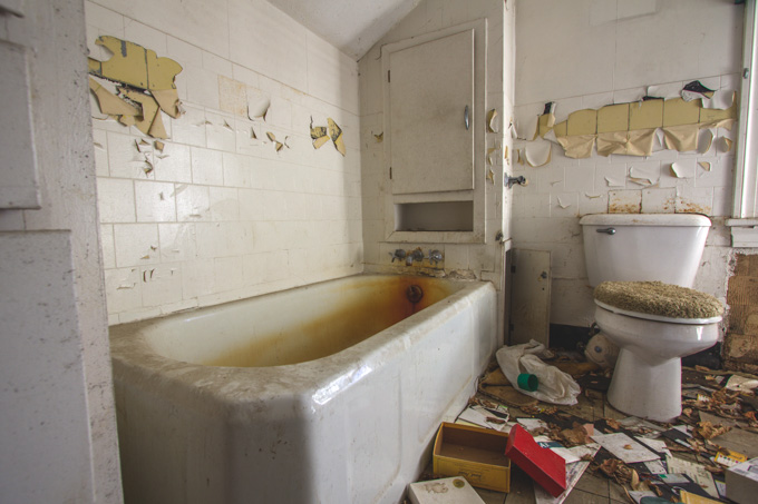 The second home, which is the one with the furniture and tv, really seemed like maybe older people lived there. Just a lot of things in the place lead me to think that. So maybe they died and there was no one to come clean up their things, or take over the property.