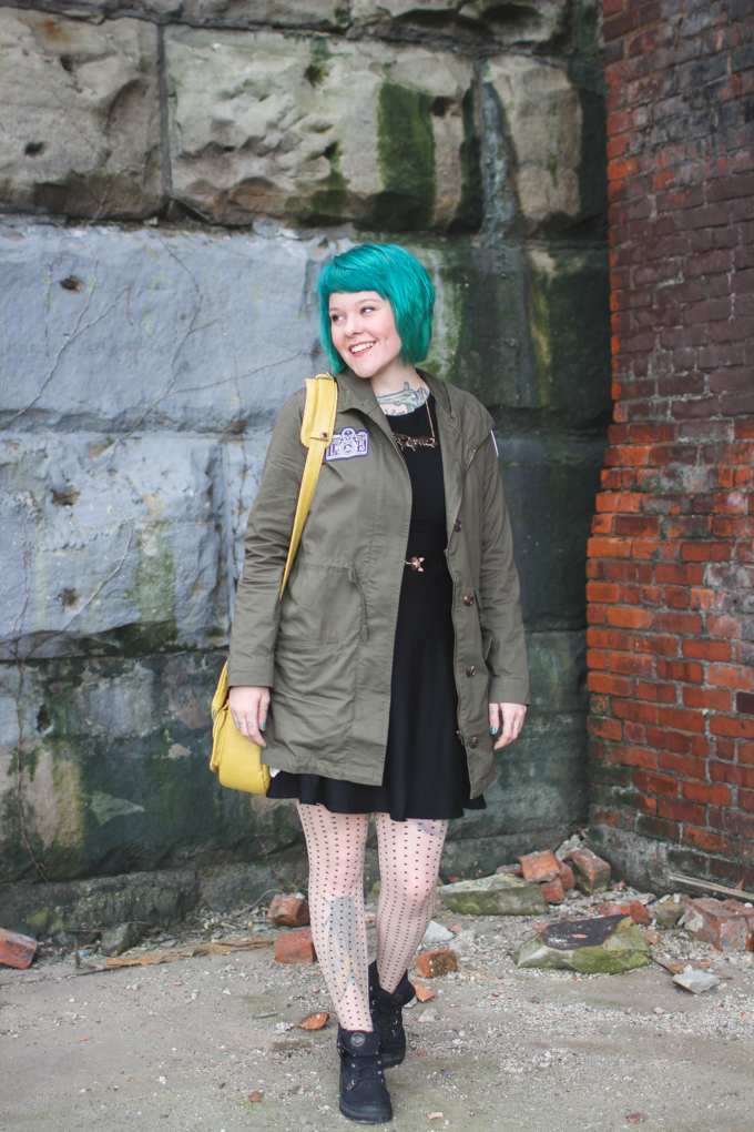 I’m a pretty colorful person but I’m sure it’s become quite apparent I have an immense love for all things black and white. I like the way it really makes my hair pop. This outfit isn’t my usual black and white striped ensemble but I’m pretty in love with it nonetheless. This dress is from Unique Vintage‘s house brand. It’s so incredibly cozy and something about the fit is just spot on. I’m not usually a huge fan of dresses that lay so flat against my stomach. I’m not sure if it’s how active I’ve been (heck yeah, bike rides!!), if it’s the dress or a combination of the two but I feel darn good in this little black number!