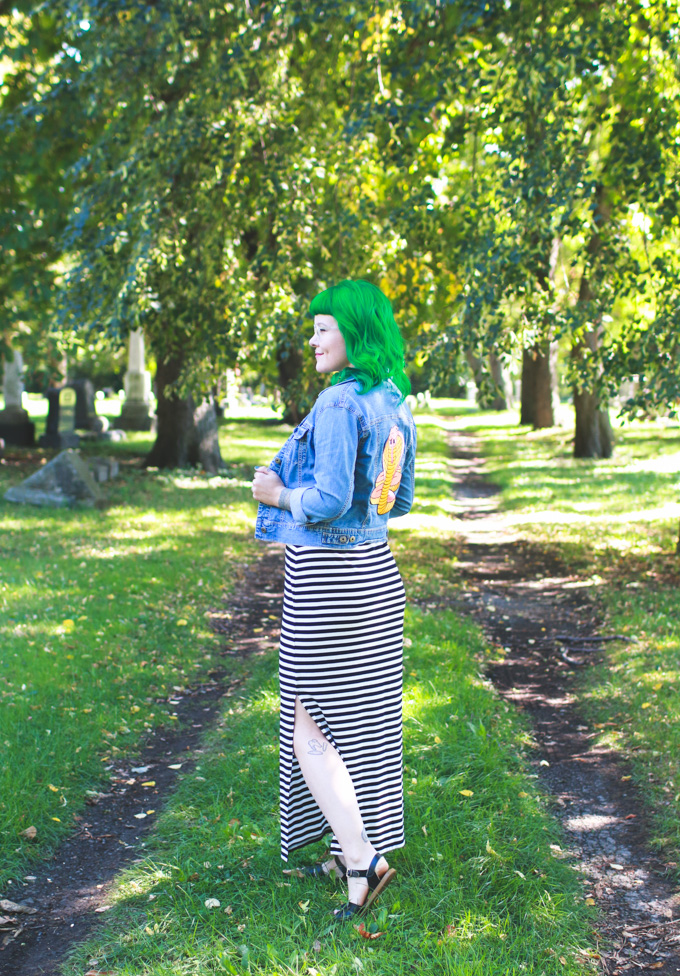 green hair, the dainty squid, kaylah doolanOOTD, Cleveland fashion blog, what I wore, striped maxi skirtthe dainty squid, kaylah doolan, green hair