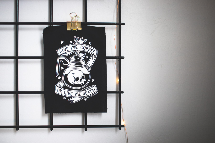 cat print / moon print / give me coffee or give me death / face planters / instax photo albums / ‘total babe’ lapel pin / tooth print by Brendan Megannety / snake phone print / most every thing else has been picked up secondhand but feel free to ask, just in case!