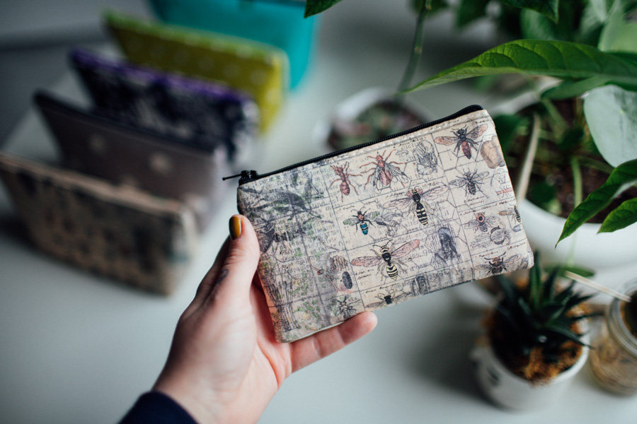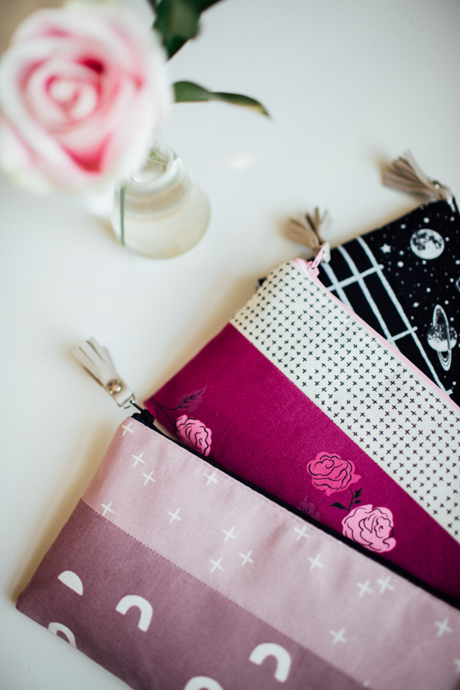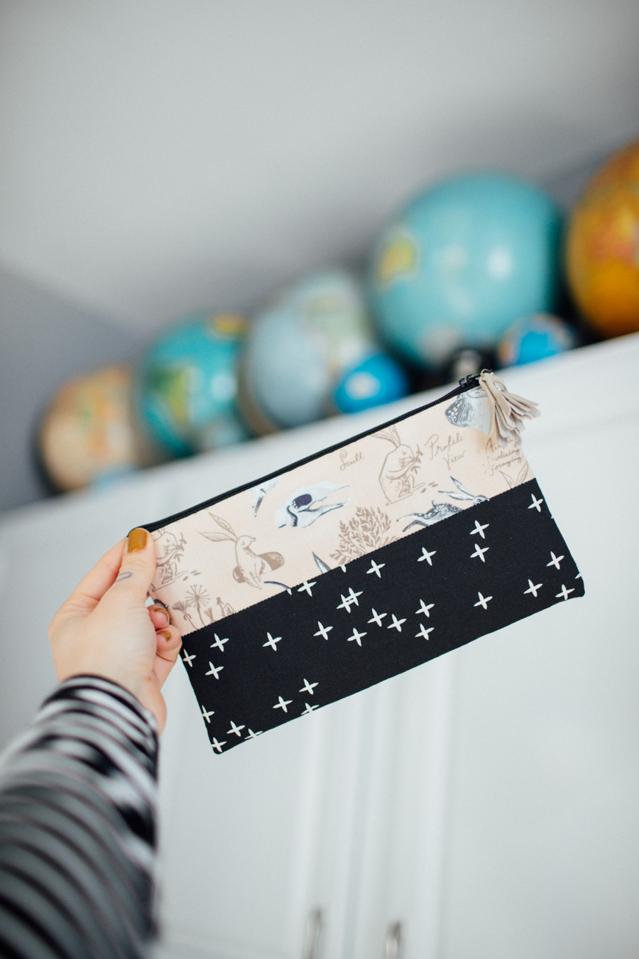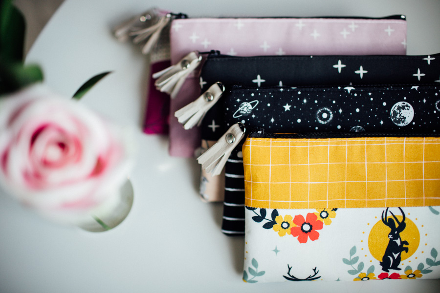 New size number 2 – above – the clutch! The first one of these I made was kind of an accident. I had cut the fabric for something else too short and decided to just add another piece of fabric on top of that. It looked precious! I knew I had to make a few more and thats how this little line of one of a kind clutches came to life. I only have seven of them right now so don’t hesitate if theres one you have your eye on. Each one even comes with a handmade zipper pull. (I am 100% obsessed with the zipper pulls! I wish I could add them to EVERYTHING, alas it’d take up all of my time making that many of them!)