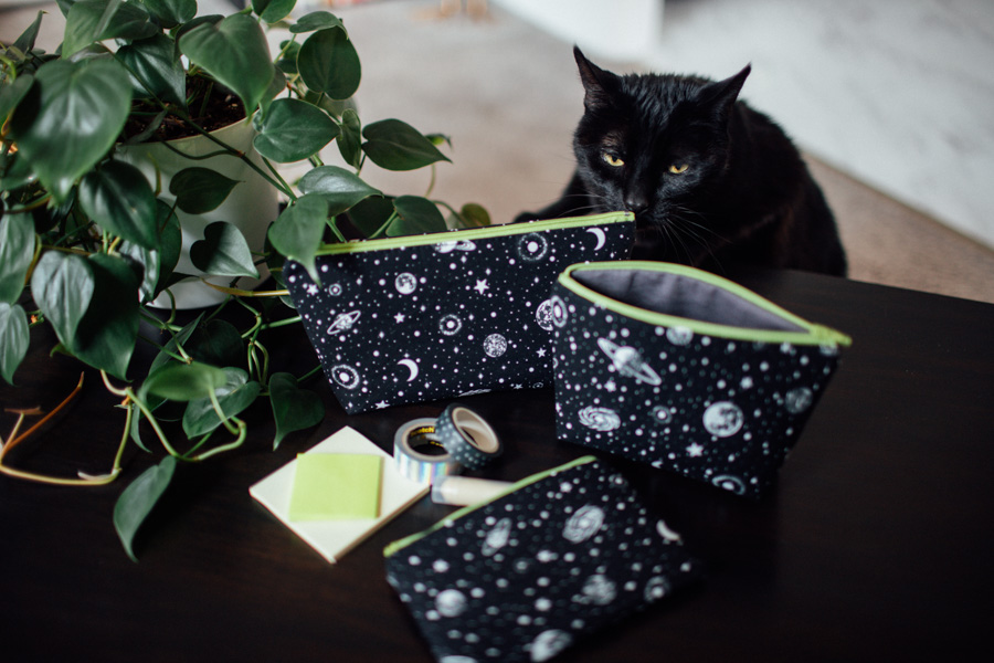 New size number 1 – above – the XL flat bottom pouch! Since before I even officially opened up people have been requesting larger and larger pouches. I thought my flat bottom pouches were a nice size but after making this bad boy I realize maybe they are a bit more petite than I previously thought. The XL flat bottom pouch measures approximately 9 inches (23cm) at its widest point by 4.5 inches (12cm) tall. The flat bottom is 2.5 inches (6cm) across. It’ll hold a lot!